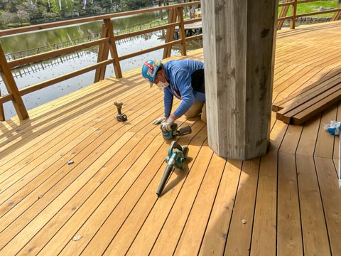 千葉市 「千葉公園・蓮華亭」ウッドデッキ リニューアル